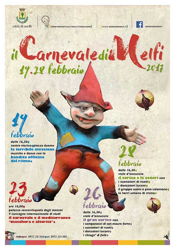 E non sarà una semplice sfilata di maschere ma una rievocazione vera e propria della tradizione popolare locale, un battesimo di colori e folklore, di musica e divertimento, di identità e innovazione. Quattro carri realizzati dal maestro cartapestaio di Putignano, Giuseppe Genco e da suo fratello Nicola, oltre 300 figuranti, musicisti, la banda civica, senza dimenticare cittadini e turisti. Numeri che vogliono soprattutto trasmettere un solo concetto: il Carnevale melfitano è tornato!