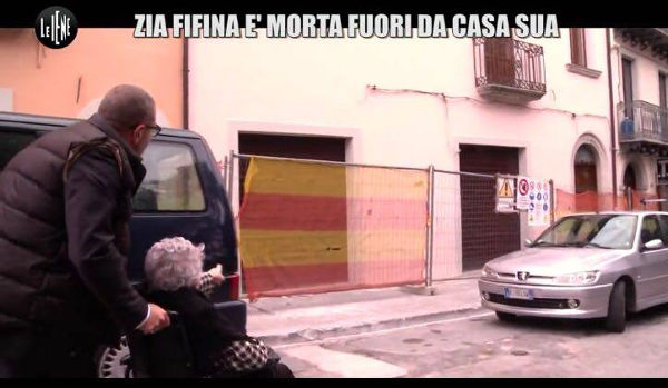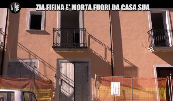 Come si evince dal servizio televisivo, una volta entrati in paese la prima tappa (fortemente voluta dall’anziana), fu fatta davanti la sua casa apparsa interamente transennata e senza alcuna possibilità di accesso.