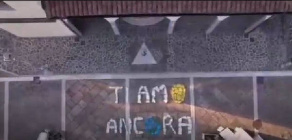 La mattina di domenica 21 aprile, i cittadini del paese hanno scoperto una nuova installazione nella piazza centrale: una serie di pietre disposte per formare la frase “Ti amo ancora”.