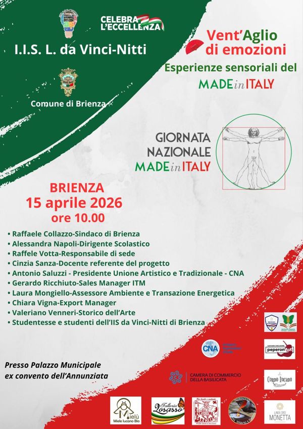 In occasione della Giornata Nazionale del Made in Italy, l’Istituto di Istruzione Superiore “L. da Vinci-Nitti”, in collaborazione con il Comune di Brienza, presenta l’evento “Vent’Aglio di emozioni – Esperienze sensoriali del Made in Italy”.