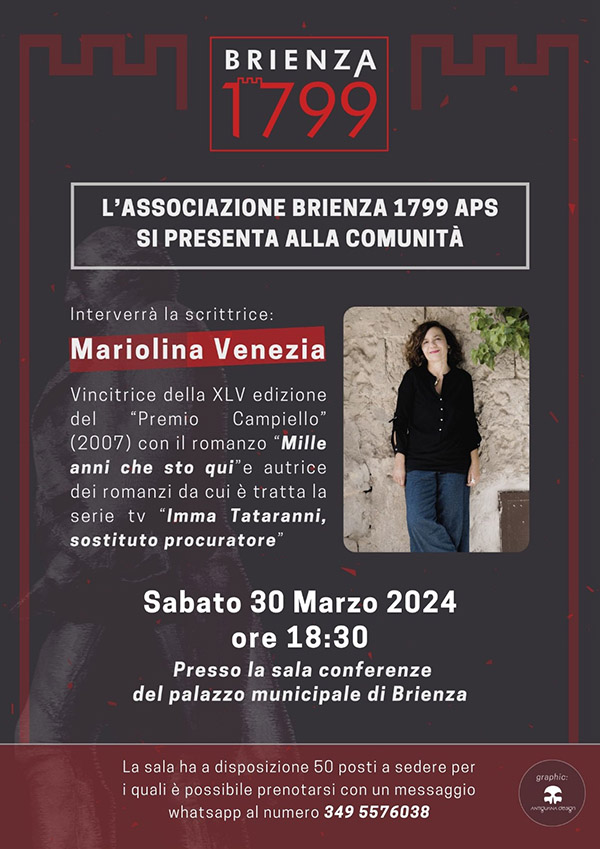 Sarà ospite della serata anche la nota scrittrice, di origine lucane, Mariolina Venezia, che racconterà, nel corso di una intervista con autore, il suo percorso professionale da lucana.
