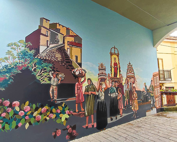 Dai moti rivoluzionari del 1860 che partirono proprio da Corleto Perticara alla celebrazione della Madonna bambina del rione Costa, ecco le rappresentazioni murali.