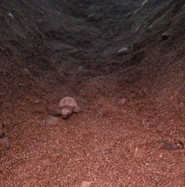 Dalla sabbia sono emerse le tanto attese tartarughe, tra lo stupore dei pochi bagnanti presenti.