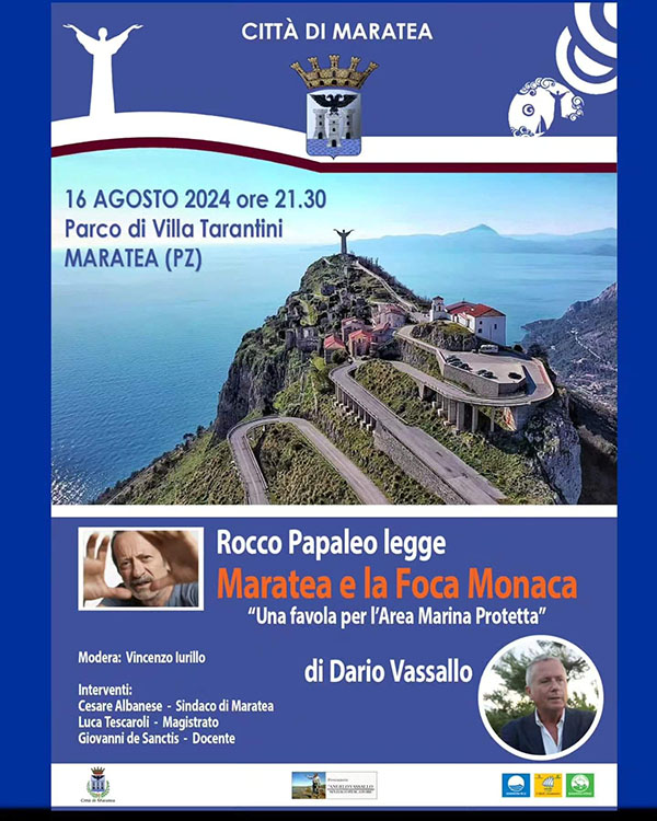 Il 16 Agosto alle ore 21:30 è in programma la lettura di una favola dal titolo “MARATEA E LA FOCA MONACA”.