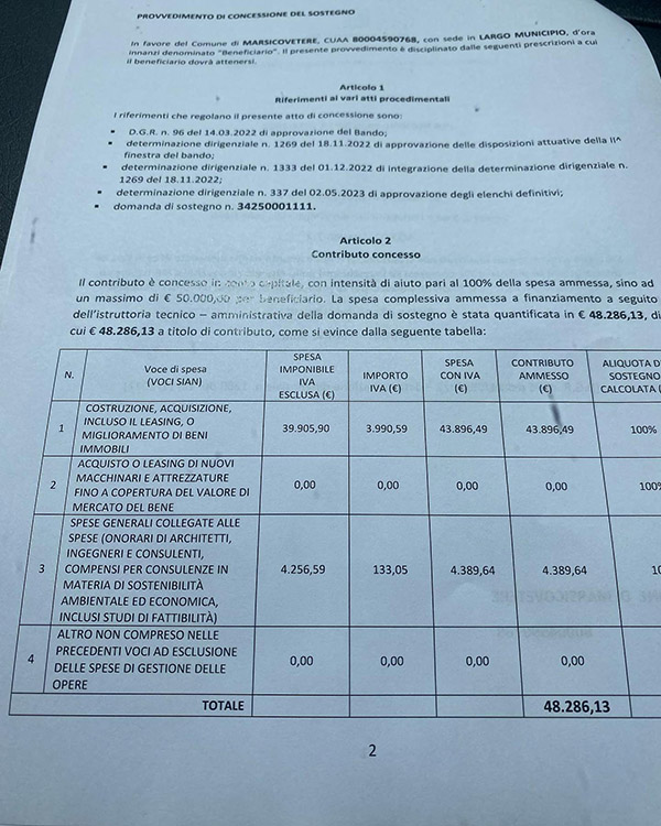 Il Comune di Marsicovetere ammesso con un finanziamento pari a €48.286,13 Misura 7.2 – PSR Regione Basilicata 2014/2022
