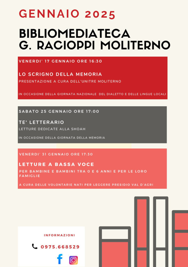 La Bibliomediateca Giacomo Racioppi di Moliterno presenta il programma letterario del mese di Gennaio: