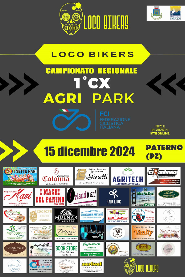 Il ciclocross torna a riconquistare la scena nel territorio della Val d’Agri e i migliori specialisti di questa disciplina invernale delle due ruote sono pronti a dare prova delle proprie capacità e di abilità tecnica in una spettacolare e inedita gara: si tratta della prima edizione del Ciclocross Agripark a Paterno in data domenica 15 dicembre.