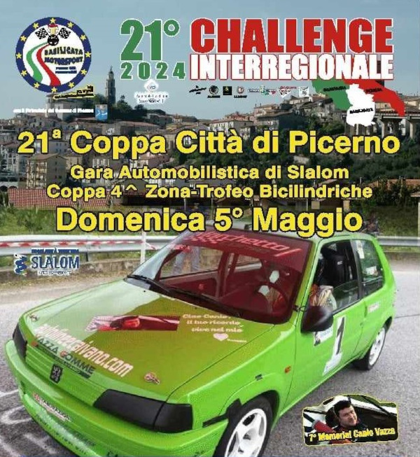 Giunge alla ventunesima edizione lo slalom “Coppa Città di Picerno- 5° Memorial C. Vazza”, organizzato dall’Asd Basilicata Motorsport ed in programma la prossima domenica 5 maggio.