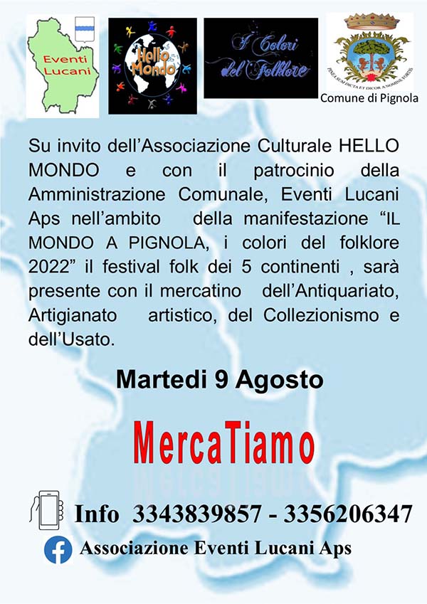 Nell’ambito della manifestazione programmata, a cura dell’associazione “Eventi lucani ASP” sarà allestito un mercatino dell’Antiquariato, Artigianato artistico, del Collezionismo e dell’Usato lungo Viale Marconi.