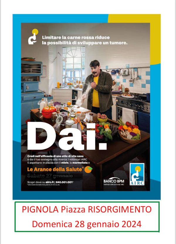 Sabato 27 gennaio, come fa sapere Airc, 20.000 volontari AIRC ti aspettano in piazza per Le Arance della Salute.