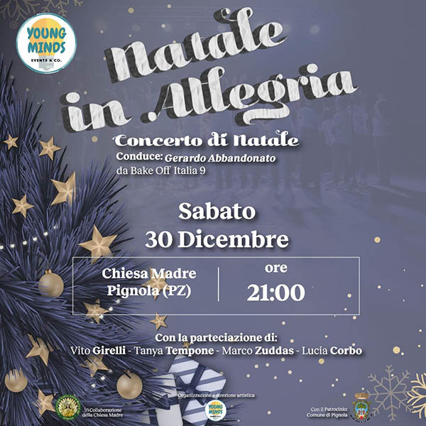 E sarà il coro di bambini “L’Ottava Nota” a esibirsi in data Sabato 30 Dicembre 2023, alle ore 21:00 nella Chiesa Madre di Pignola durante l’evento “Natale in Allegria” organizzato dall’associazione giovanile “Young Minds – Events&Co.”