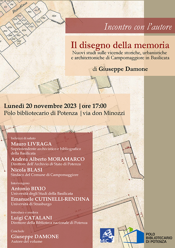 Lunedì 20 Novembre, con inizio alle ore 17:00, il Polo bibliotecario di Potenza ospiterà un incontro con Giuseppe Damone, autore di uno studio sul paese lucano scomparso, intitolato ‘Il disegno della memoria: nuovi studi sulle vicende storiche, urbanistiche e architettoniche di Campomaggiore in Basilicata’.