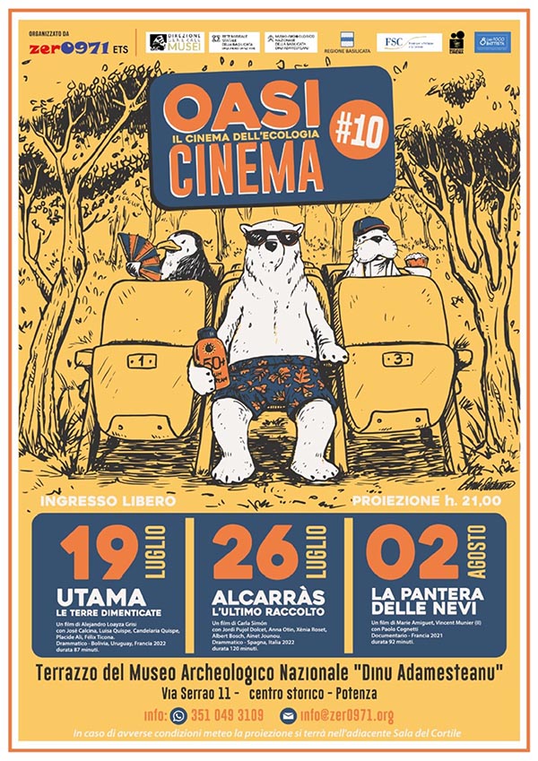 Al via la X edizione di “OasiCinema”, il cinema dell’ecologia, che avrà luogo nei giorni di mercoledì 19, 26 luglio e 2 agosto presso il Museo Archeologico Nazionale “Dinu Adamesteanu” di Potenza.