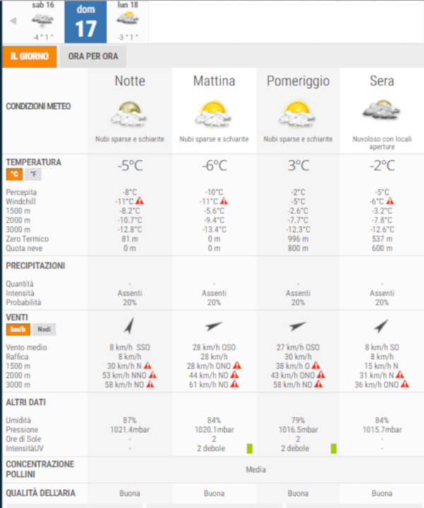 La temperatura massima registrata pare che sarà di 3°C, la minima di -6°C.