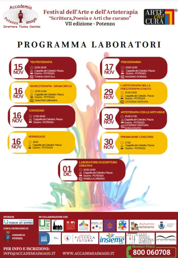 In parallelo al festival, saranno organizzati una serie di laboratori gratuiti dedicati all’arteterapia, tra cui: