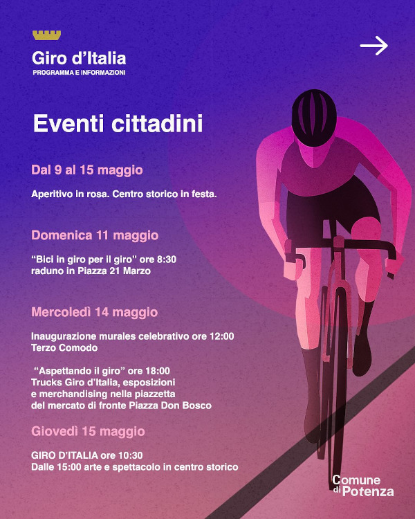 Non perdetevi “Bici in giro per il giro” l’11 maggio alle 8:30 in Piazza 21 Marzo, e tanti altri appuntamenti per celebrare insieme la magia del Giro.