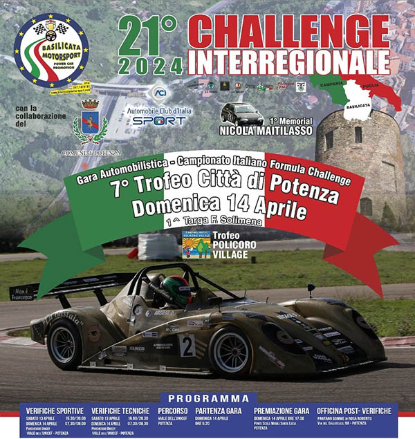 Dal mare al capoluogo di regione più alto d’Italia: il Campionato Italiano Formula Challenge ACI Sport 2024, iniziato il mese scorso con la prova pugliese di Torricella (TA) e con la vittoria del campione italiano 2023 Donato Argese su Radical SR4, si prepara a disputare la sua seconda tappa su un avvincente circuito cittadino nella città di Potenza, il prossimo 14 Aprile.