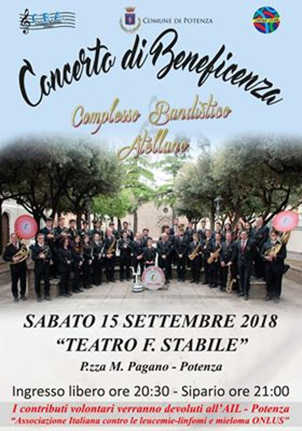 Il tutto prenderà inizio domani, Sabato 15 Settembre, con il Concerto di Beneficenza, i cui contributi volontari saranno devoluti all’Ail-Potenza (Associazione Italiana contro leucemie-linfomi e mieloma ONLUS) che si terrà a Potenza presso il teatro F.Stabile alle ore 20:30, con sipario alle 21:00.
