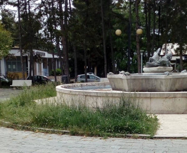 “Erba alta manco fossimo in una foresta amazzonica; aiuole non curate; fontana senza acqua: da anni ormai, anch’essa degradata.