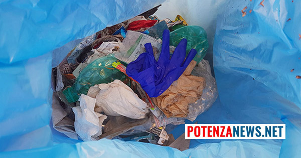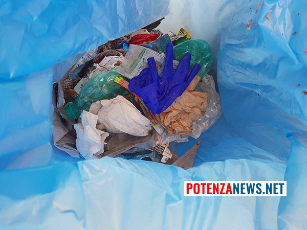 Ecco le foto della busta piena di rifiuti raccolti dalle due cittadine potentine: