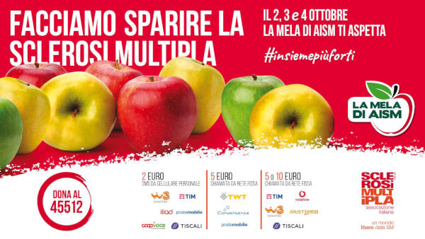 “La Mela di AISM è un’iniziativa promossa dall’Associazione Italiana Sclerosi Multipla e si svolge sotto l’Alto Patronato del Presidente della Repubblica.