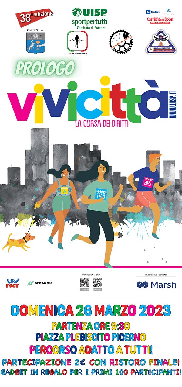 Anche il Comitato Territoriale Uisp di Potenza scende in campo e con l’asd Picerno Run presenta il prologo del “Vivicittà” 2023 che si terrà Domenica 26 Marzo, alle ore 9:30, da piazza Plebiscito a Picerno, con una passeggiata ludico-motoria tra le vie del paese.