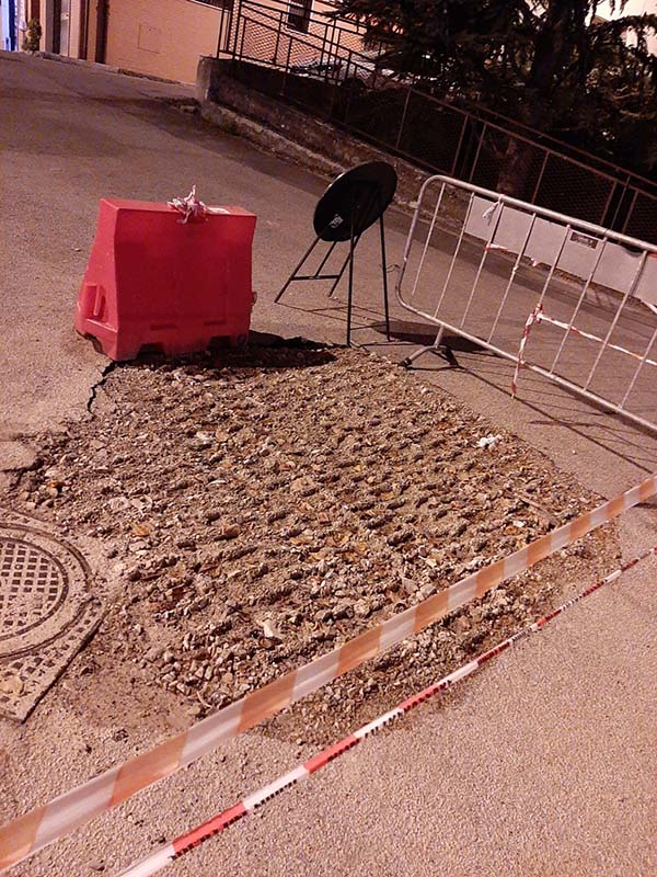 Il Comune è intervenuto nell’immediatezza ma poi ha lasciato una bella transenna in attesa di non si sa bene cosa.