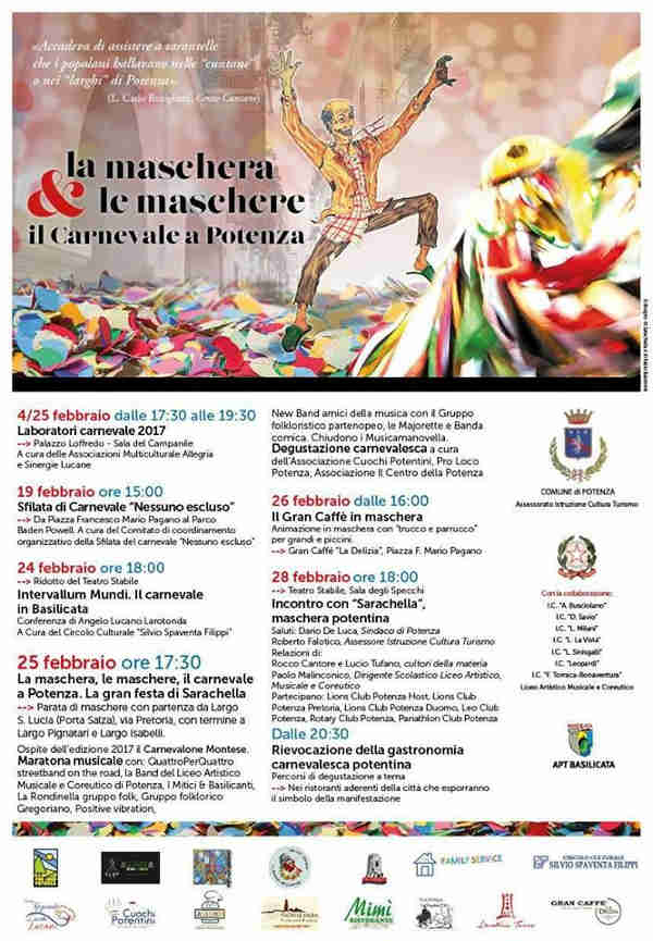 Ecco di seguito le foto scattate oggi durante la sfilata, la locandina dell’evento e il programma sul Carnevale a Potenza.