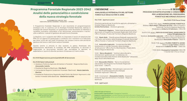 Nell’ambito di tali attività la Regione Basilicata con il supporto del CREA ha organizzato un evento che si terrà il 19 dicembre 2023 dalle ore 9:30 alle ore 18:00 presso il centro congressi del Park Hotel di Potenza.