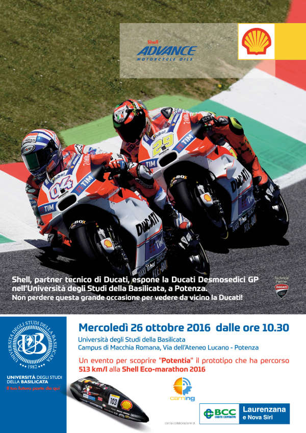 Per l’occasione, accanto a “Potentia”, Shell Italia (partner tecnico di Ducati) esporrà nel Campus il modello Ducati Desmosedici Gp.