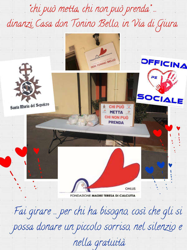 “Chi può metta, chi non può prenda”, vuol dire che chiunque ne abbia reale bisogno può bussare alla loro porta e prendere un cestino da portare a casa.