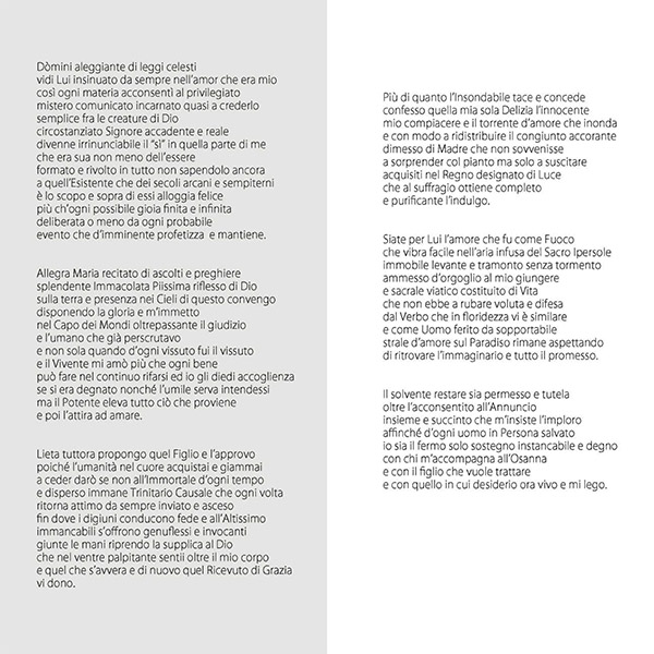 Sarà annessa una mostra di pittura di arte sacra “Dedicata alla Vergine SS.” curata da EDM ARTELIER aperta al pubblico con ingresso libero dal 9 al 12 dicembre 2023 dalle 10.30 alle 13.00 e dalle 17.30 alle 19.00.