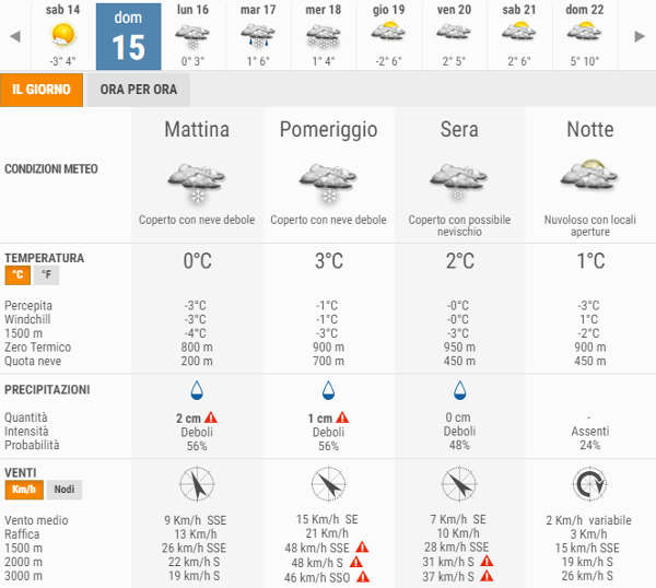 Di seguito la situazione prevista nei prossimi giorni con in dettaglio la giornata di domani Domenica 15 Gennaio (Fonte: 3Bmeteo.it).