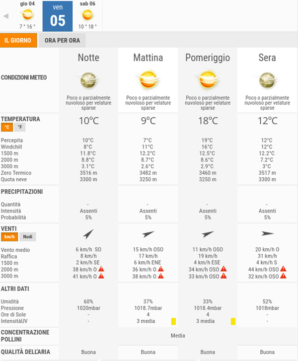 Secondo gli esperti di 3bmeteo, domani, Venerdì 5 Febbraio, avremo cieli in prevalenza parzialmente nuvolosi per l’intera giornata, non sono previste piogge.