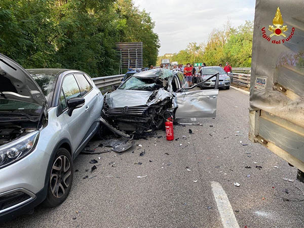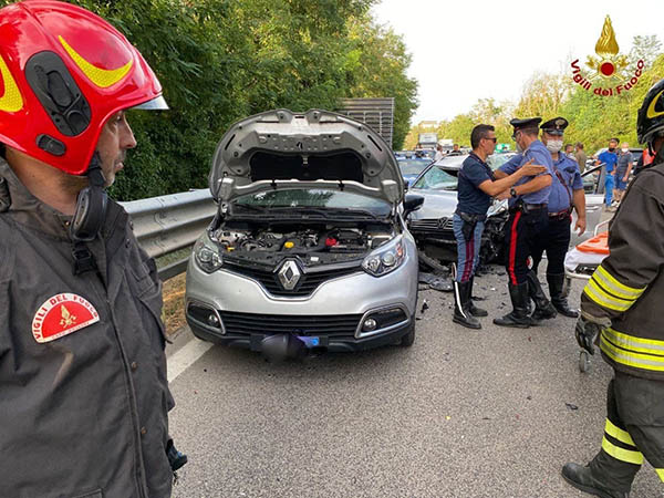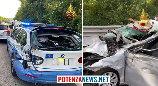 I Vigili del Fuoco giunti sul posto, in prossimità dell’uscita di Potenza Centro, hanno trovato coinvolte nel medesimo incidente due autovetture del tipo Passat, Captur ed un furgone, oltre ad una automobile della Polizia di Stato.