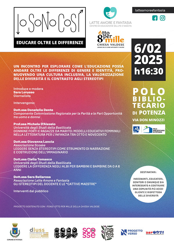“Io Sono Così. Educare Oltre le Differenze” è il titolo del progetto dell’Associazione Latte, amore e fantasia che sarà presentato il 6 Febbraio alle 16:30 al Polo Bibliotecario di Potenza.