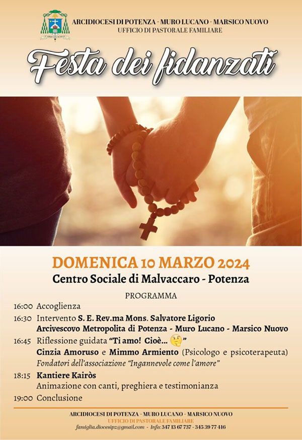 Riprende dopo una lunga pausa dovuta alla pandemia, la tradizione della annuale “festa dei fidanzati” ideata dall’ufficio della pastorale familiare per favorire un incontro-confronto tra le giovani coppie e discutere delle difficoltà più ricorrenti, soprattutto psicologiche, che rendono a volte difficile nella ”società liquida” il matrimonio inteso come assunzione di responsabilità di fronte alla società civile e alla comunità cristiana.