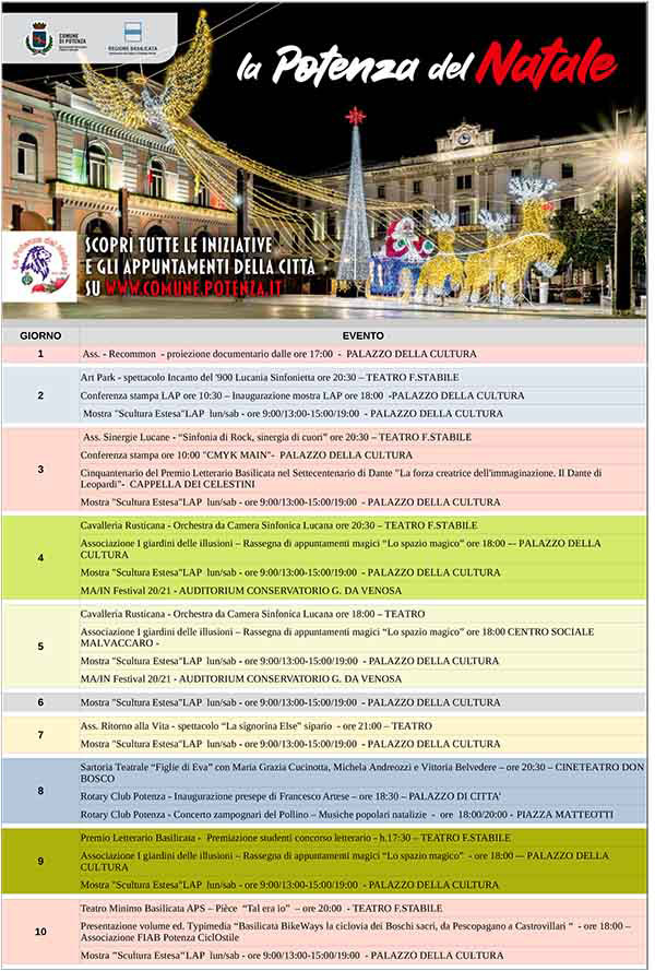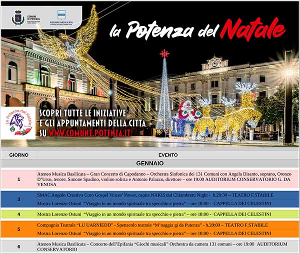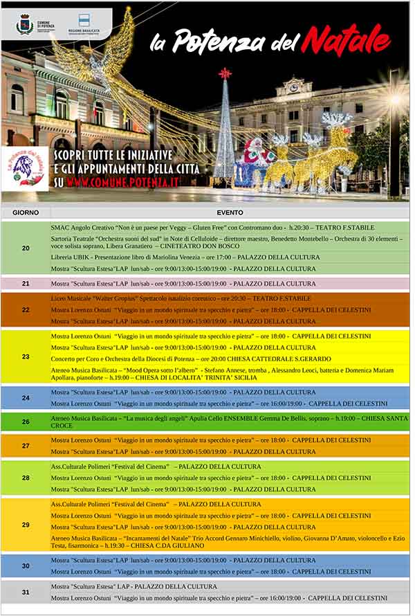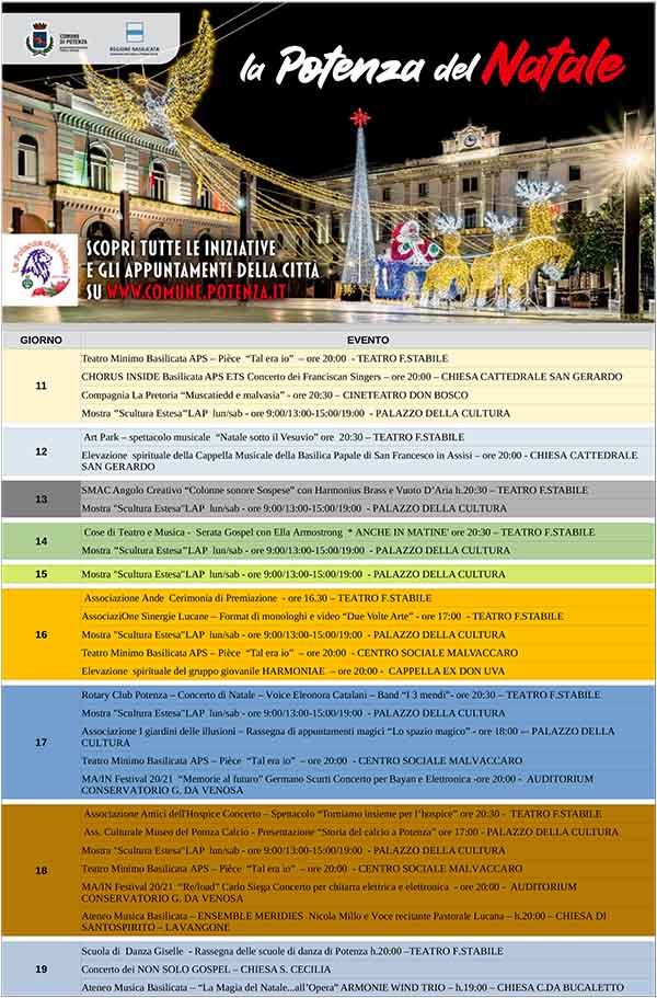 Ed ecco quindi il programma completo per vivere appieno l’atmosfera natalizia a Potenza.