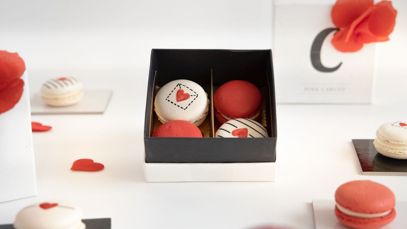 Proprio in occasione di San Valentino, sul fresco bancone della pasticceria, ecco arrivare la nuova variante dei “macaron”, morbide ed eleganti meringhe dalla golosa farcitura.