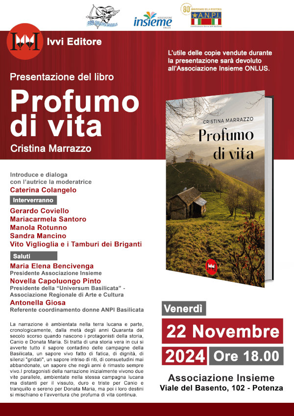 Venerdì 22 Novembre 2024 alle ore 18:00 ci sarà la presentazione del libro “Profumo di vita”, scritto da Cristina Marrazzo ed edito da Ivvi Editore.