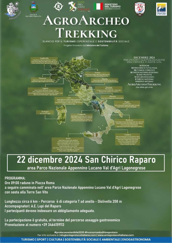 Tutto pronto a San Chirico Raparo per la terza tappa lucana del progetto nazionale “AgroArcheoTrekking” promosso dalla Rete Associativa Terzo Settore Ente Pro Loco Italiane Aps con il sostegno del Ministero del Turismo.