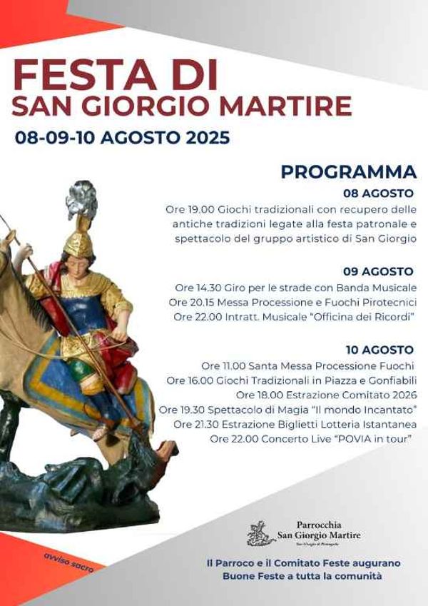 In occasione della Festività di San Giorgio Martire il 9-10 Agosto, una due giorni di grande festa e spettacolo a SAN GIORGIO di PIETRAGALLA.