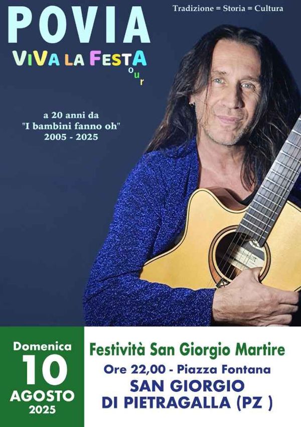 A San Giorgio di Pietragalla in occasione della Festività del Santo Martire il concerto di Povia e tanti altri eventi. Ecco il programma