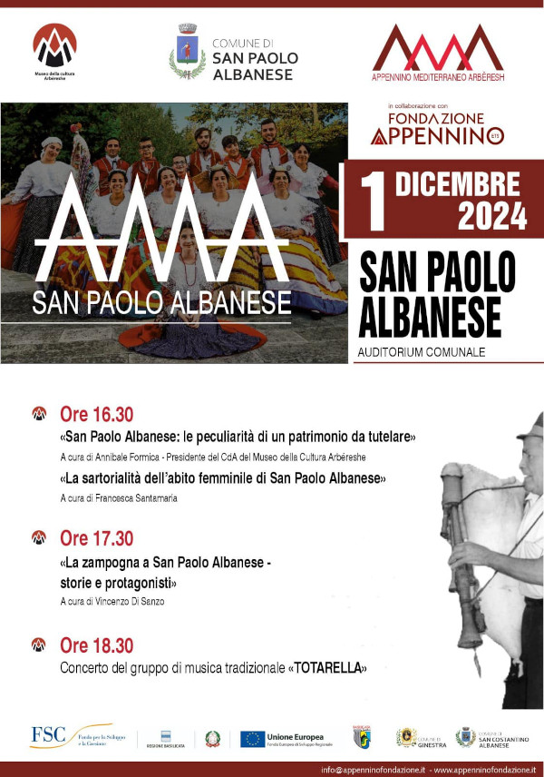 Il 1° Dicembre 2024, l’Auditorium Comunale di San Paolo Albanese ospiterà un nuovo evento culturale organizzato dalla Fondazione Appennino in collaborazione con il Comune di San Paolo Albanese.