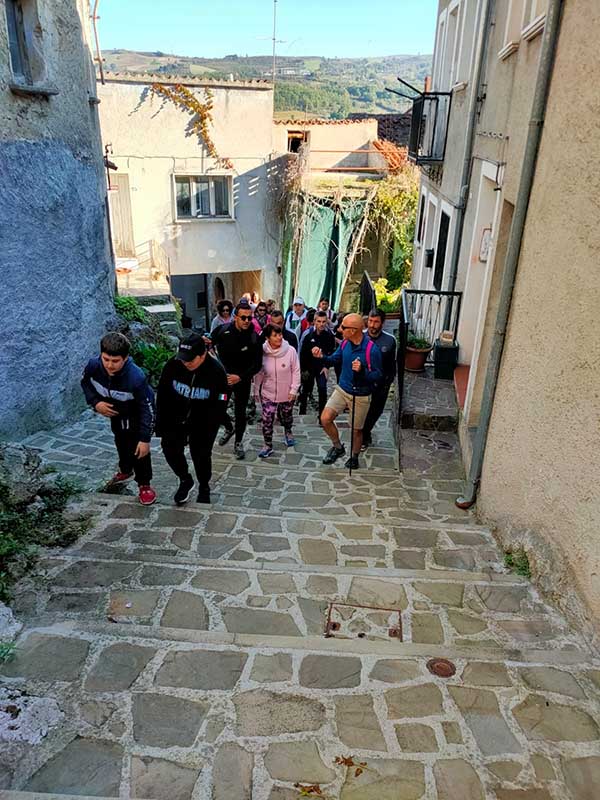 Si è partiti dalla piazza principale del paese, si è percorso una parte del centro storico per poi raggiungere la campagna incontaminata.