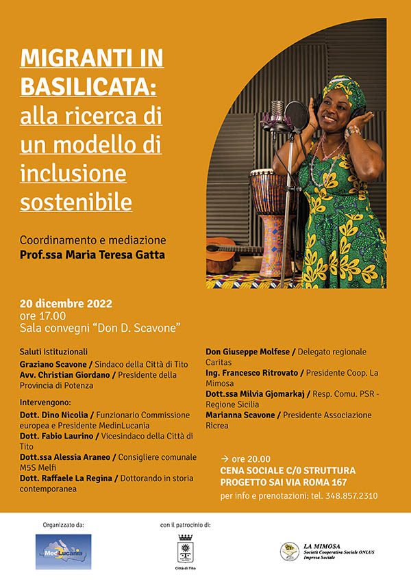 Sono alcuni degli interrogativi che verranno posti a Tito il 20 dicembre durante il convegno su “Migranti in Basilicata: alla ricerca di un modello di inclusione sostenibile”, organizzato dall’associazione MedinLucania, con: