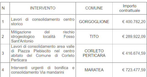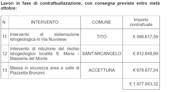 “Il soggetto attuatore degli interventi per il contrasto al dissesto idrogeologico in Basilicata ha completato le procedure di appalto relative a 13 interventi“.