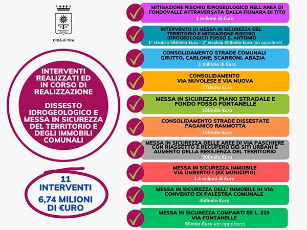 Comune di Tito impegnato per consolidare e mettere in sicurezza il territorio.