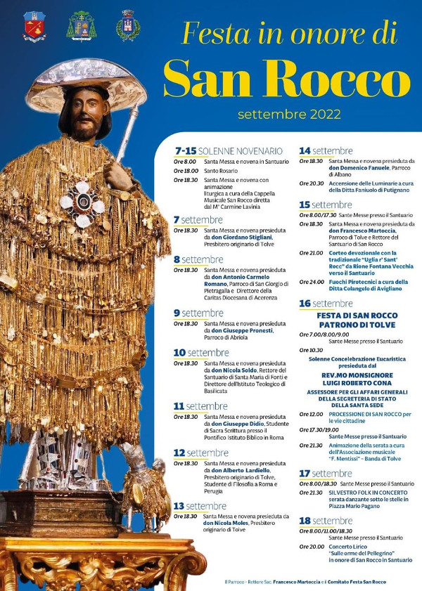 A Tolve ancora celebrazioni per il Patrono San Rocco! Questo il programma