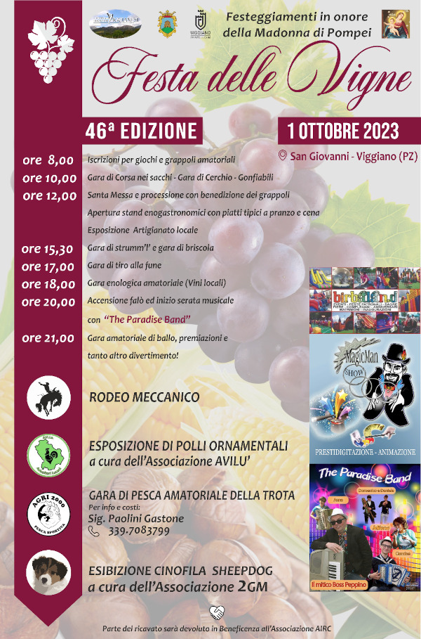 “In occasione dei festeggiamenti della Madonna di Pompei, si svolgerĂ la sagra dell’uva.